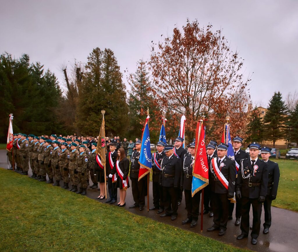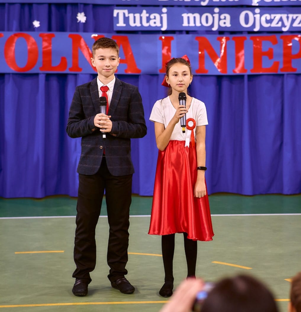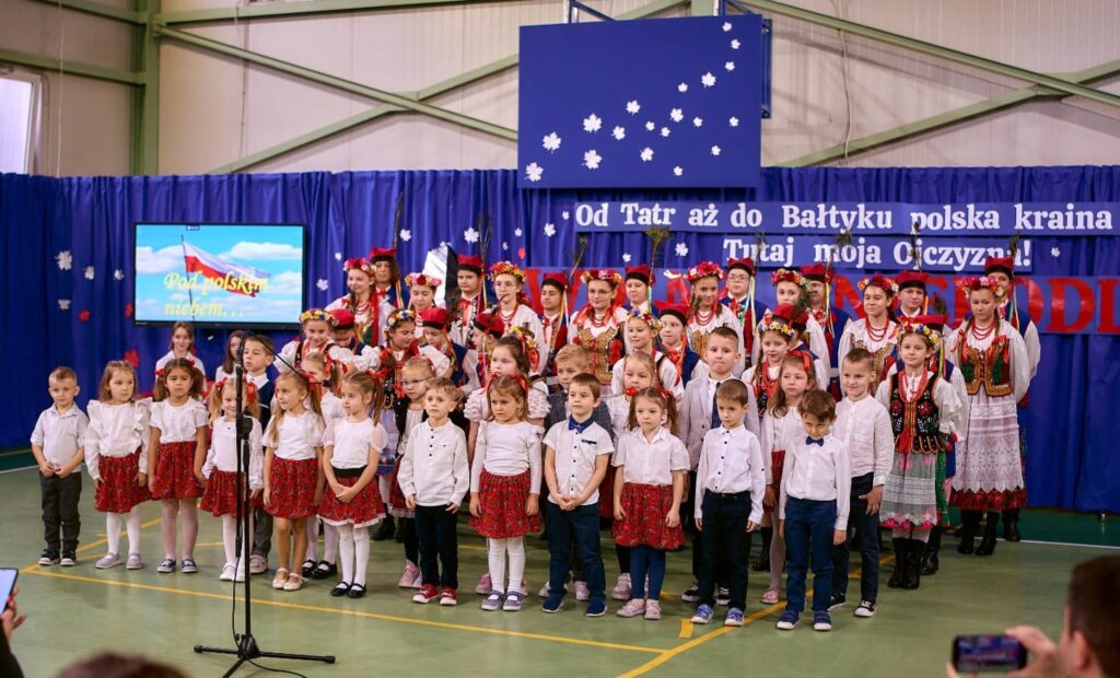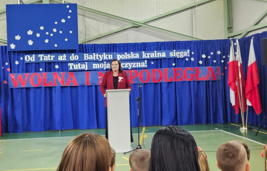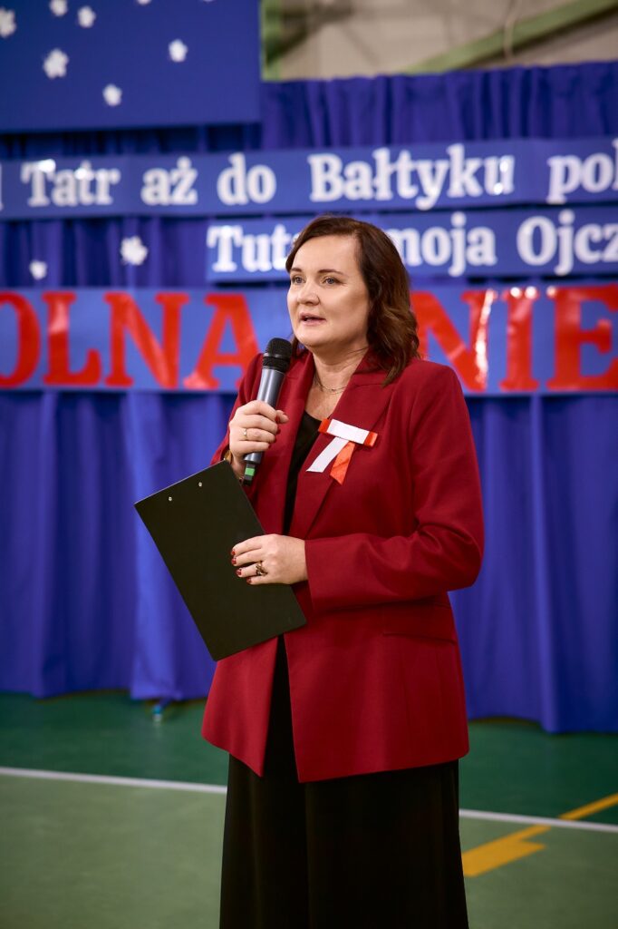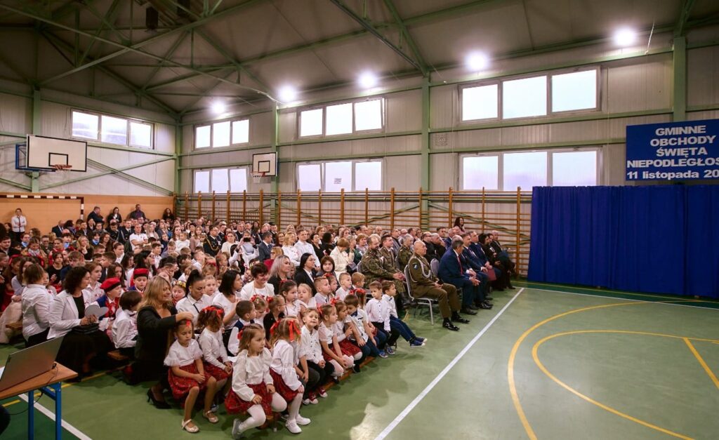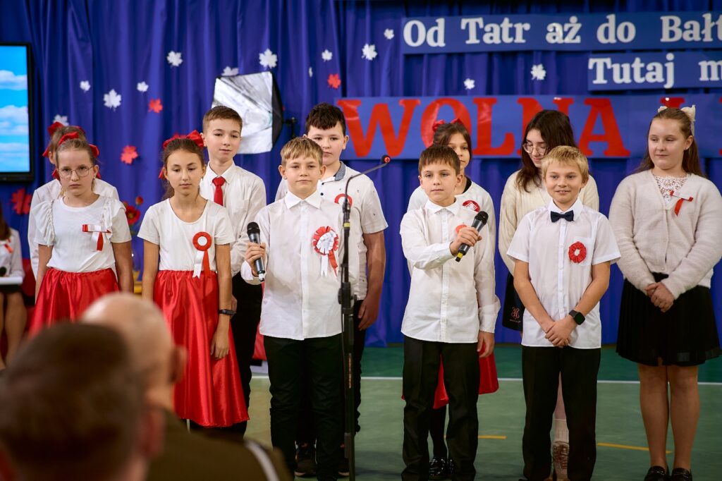11 listopada 2025 r. celebrowaliśmy w naszej szkole Gminne Obchody Święta Niepodległości. Z tej okazji gościliśmy u nas: Pułkownika Piotra Barana – przedstawiciela Dowództwa Komponentu Wojsk Specjalnych z Krakowa, Pana Jacka Magdonia – reprezentującego Marszałka Województwa podkarpackiego oraz Oddział Instytutu Pamięci Narodowej w Rzeszowie, Panią Karolinę Duży – reprezentującą Podkarpackiego Kuratora Oświaty w Rzeszowie, Pana Andrzeja Ślipskiego Wójta Gminy Czudec oraz pana Piotra Piękosia – wicewójta Gminy, Księdza proboszcza Józefa Pańczuka – wicedziekana Dekanatu Czudeckiego, Pana Stanisława Gierlaka – Członka Zarządu Powiatu Strzyżowskiego, Pana Piotra Szopę i Pana Mariana Złotka – Radnych Powiatu Strzyżowskiego, Starszego kapitana Pana Bogdana Piaseckiego – zastępcę komendanta Powiatowego Państwowej Straży Pożarnej w Strzyżowie, Panią Celinę Bałchan – Przewodniczącą Rady Gminy Czudec wraz ze wszystkimi radnymi i sołtysami z naszej gminy, Panią Annę Borowiec – Skarbnika Gminy Czudec, Panią Annę Oliwińską – Wacko – redaktora naczelnego Kwartalnika Czudeckiego, dyrektorów i kierowników jednostek z terenu Gminy Czudec, Jednostkę Strzelecką 2020 im. kapitana Zygmunta Patryna ps. „Słowik” ze Strzyżowa, pod dowództwem młodszego inspektora Mateusza Gałuszki, poczty sztandarowe z jednostki strzeleckiej oaz straży pożarnych z terenu gminy, Panią Agnieszkę Jawor wraz z członkiniami KGW w Pstrągowej, Panią Magdalenę Wiater – Przewodniczą Rady Rodziców wraz z członkami rady, a także Rodziców, chór CANTAMUS, przyjaciół szkoły, sympatyków, sponsorów, mieszkańców Pstrągowej i innych miejscowości z Gminy Czudec.