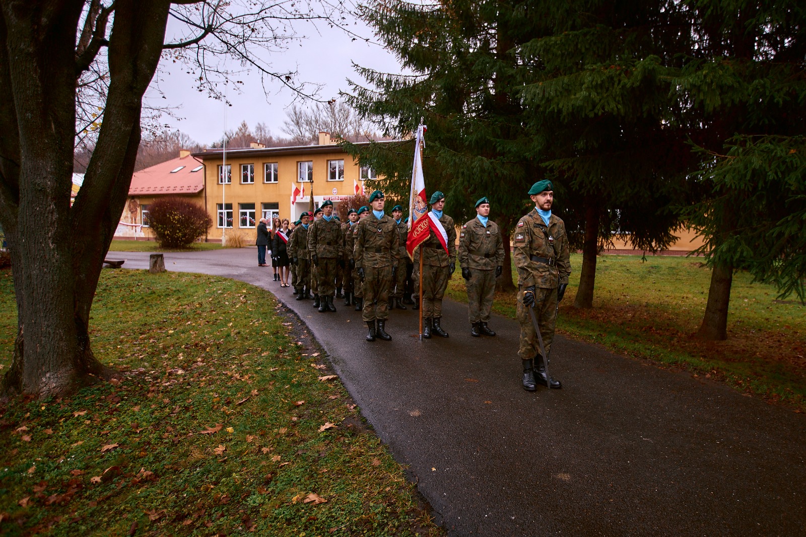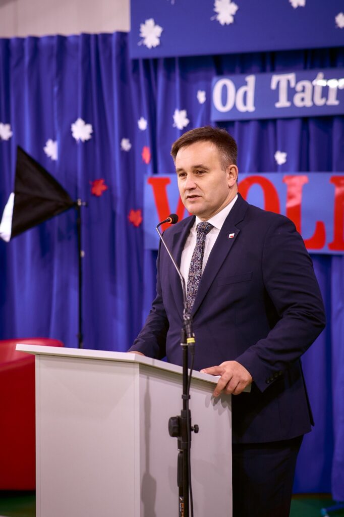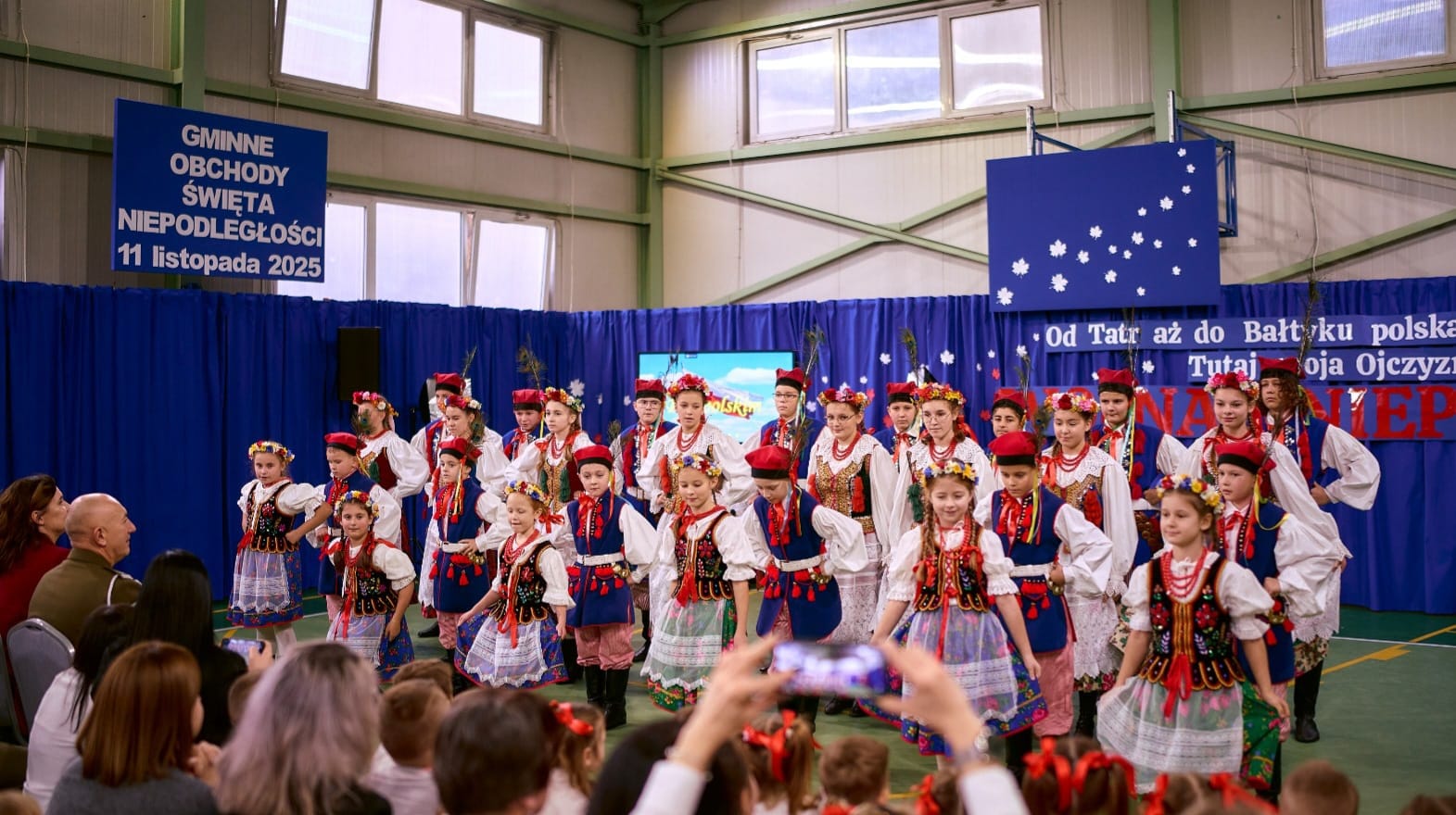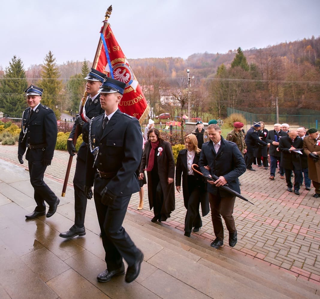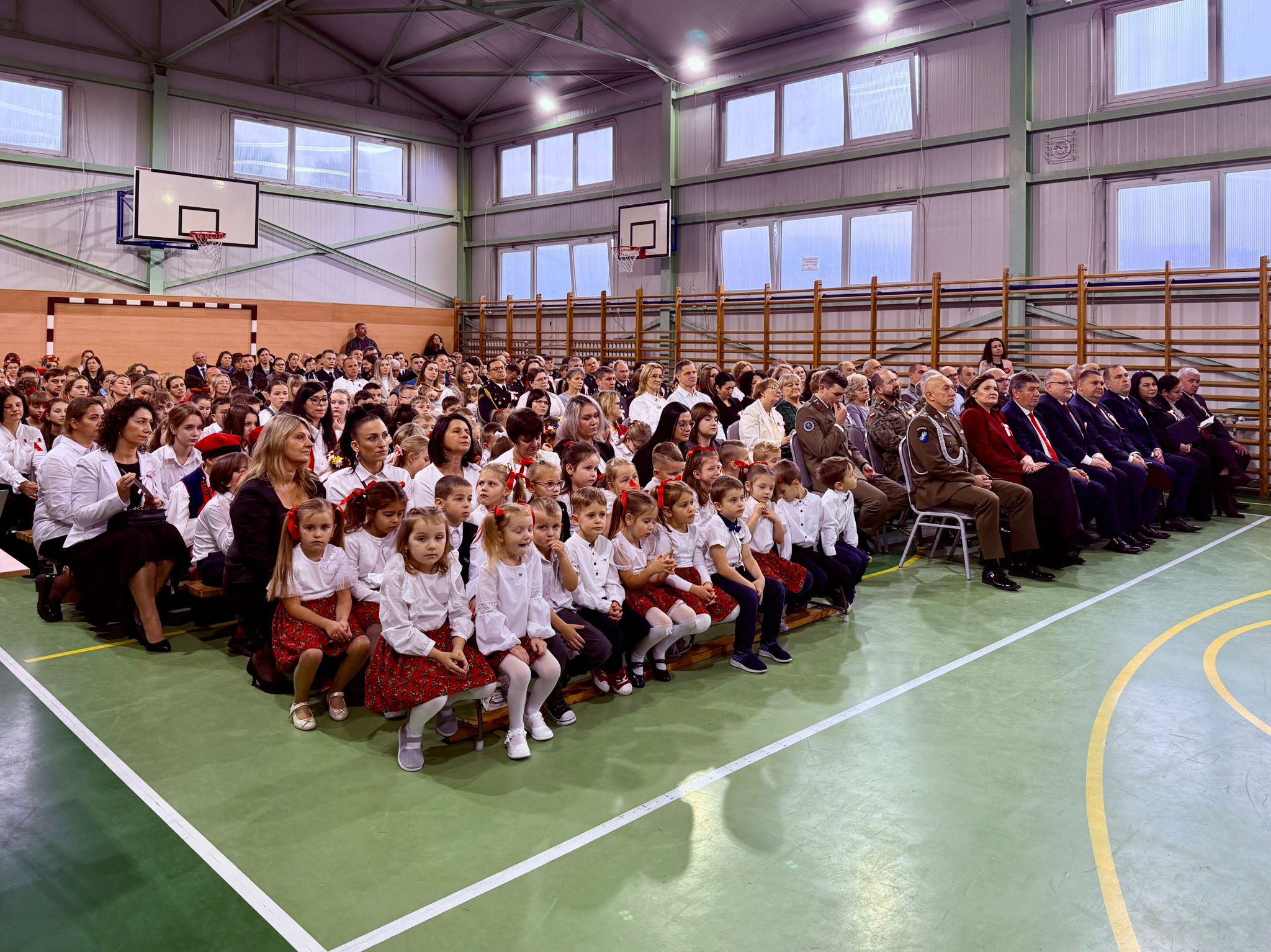 11 listopada 2025 r. celebrowaliśmy w naszej szkole Gminne Obchody Święta Niepodległości. Z tej okazji gościliśmy u nas: Pułkownika Piotra Barana – przedstawiciela Dowództwa Komponentu Wojsk Specjalnych z Krakowa, Pana Jacka Magdonia – reprezentującego Marszałka Województwa podkarpackiego oraz Oddział Instytutu Pamięci Narodowej w Rzeszowie, Panią Karolinę Duży – reprezentującą Podkarpackiego Kuratora Oświaty w Rzeszowie, Pana Andrzeja Ślipskiego Wójta Gminy Czudec oraz pana Piotra Piękosia – wicewójta Gminy, Księdza proboszcza Józefa Pańczuka – wicedziekana Dekanatu Czudeckiego, Pana Stanisława Gierlaka – Członka Zarządu Powiatu Strzyżowskiego, Pana Piotra Szopę i Pana Mariana Złotka – Radnych Powiatu Strzyżowskiego, Starszego kapitana Pana Bogdana Piaseckiego – zastępcę komendanta Powiatowego Państwowej Straży Pożarnej w Strzyżowie, Panią Celinę Bałchan – Przewodniczącą Rady Gminy Czudec wraz ze wszystkimi radnymi i sołtysami z naszej gminy, Panią Annę Borowiec – Skarbnika Gminy Czudec, Panią Annę Oliwińską – Wacko – redaktora naczelnego Kwartalnika Czudeckiego, dyrektorów i kierowników jednostek z terenu Gminy Czudec, Jednostkę Strzelecką 2020 im. kapitana Zygmunta Patryna ps. „Słowik” ze Strzyżowa, pod dowództwem młodszego inspektora Mateusza Gałuszki, poczty sztandarowe z jednostki strzeleckiej oaz straży pożarnych z terenu gminy, Panią Agnieszkę Jawor wraz z członkiniami KGW w Pstrągowej, Panią Magdalenę Wiater – Przewodniczą Rady Rodziców wraz z członkami rady, a także Rodziców, chór CANTAMUS, przyjaciół szkoły, sympatyków, sponsorów, mieszkańców Pstrągowej i innych miejscowości z Gminy Czudec.