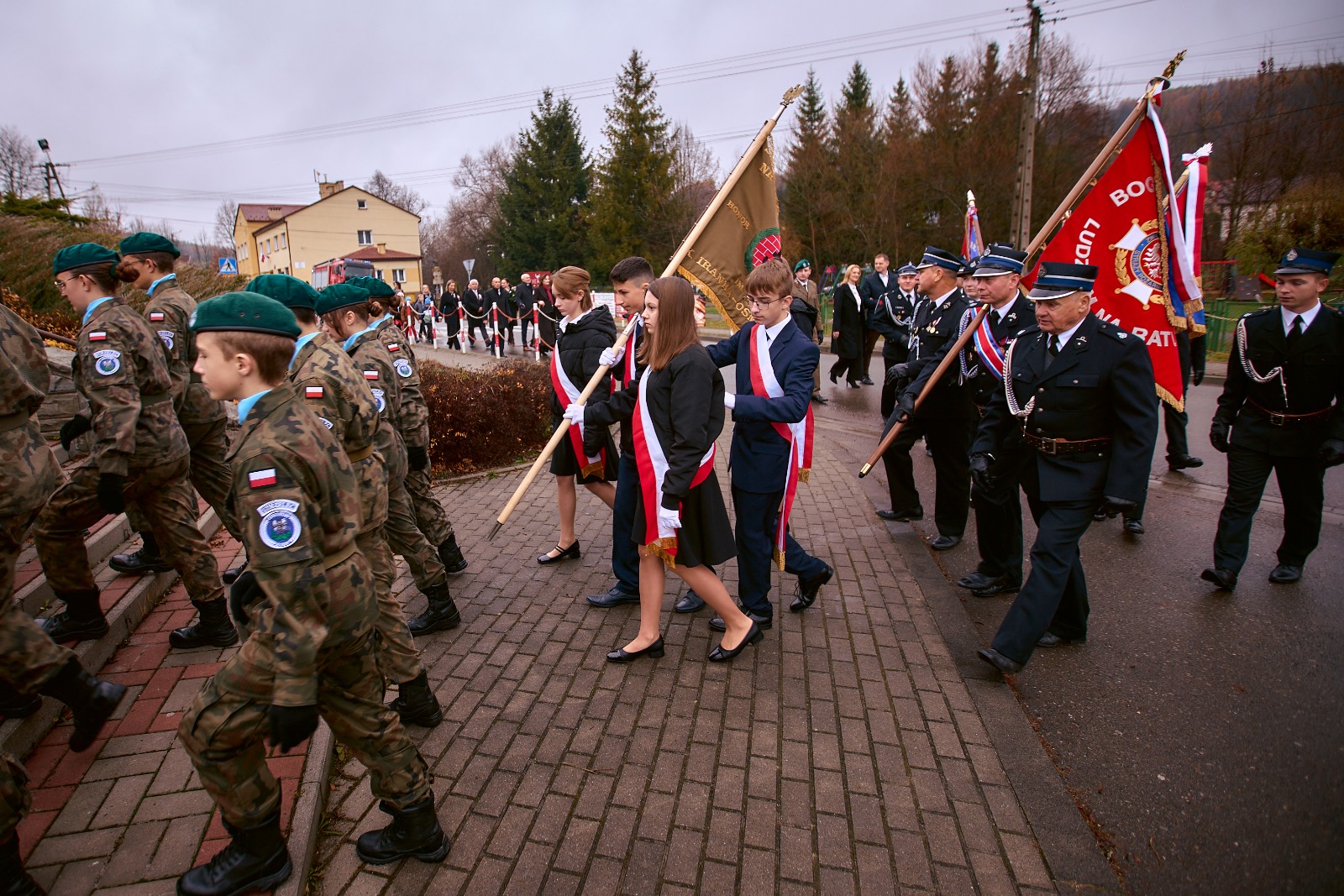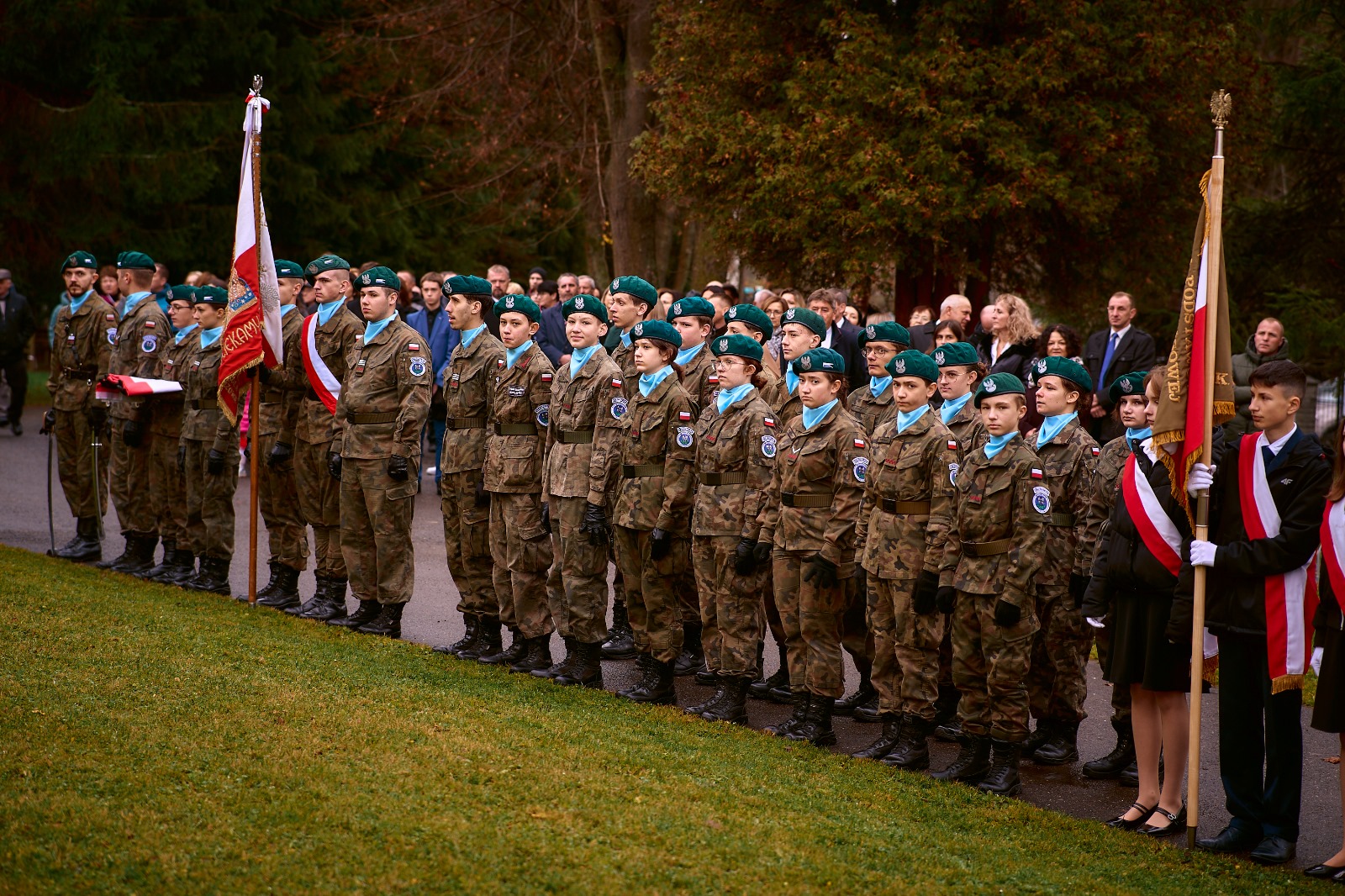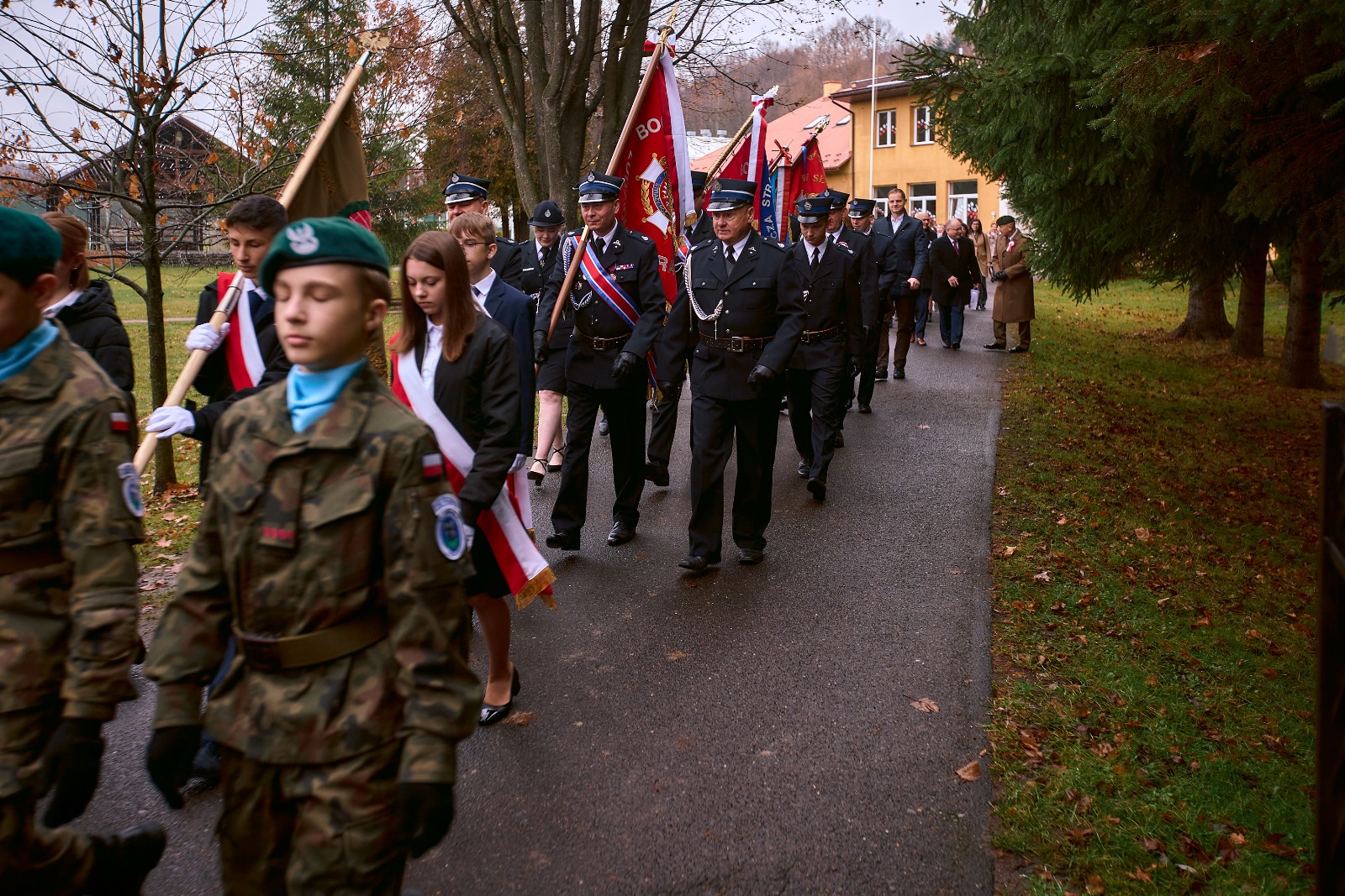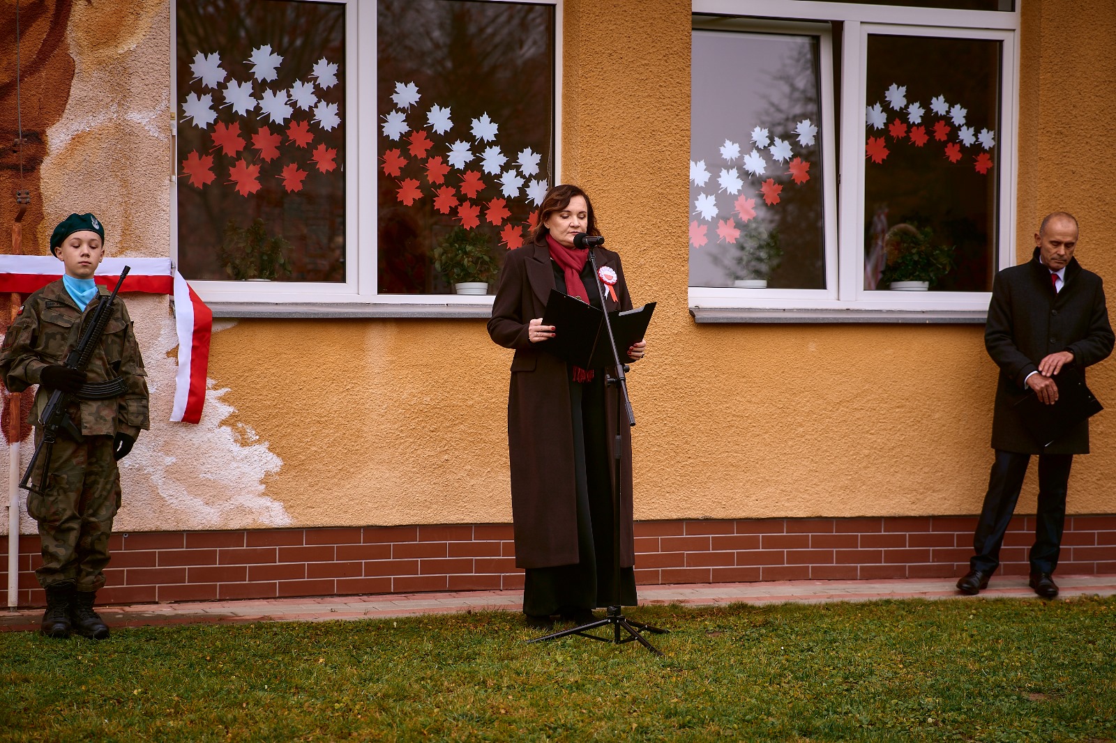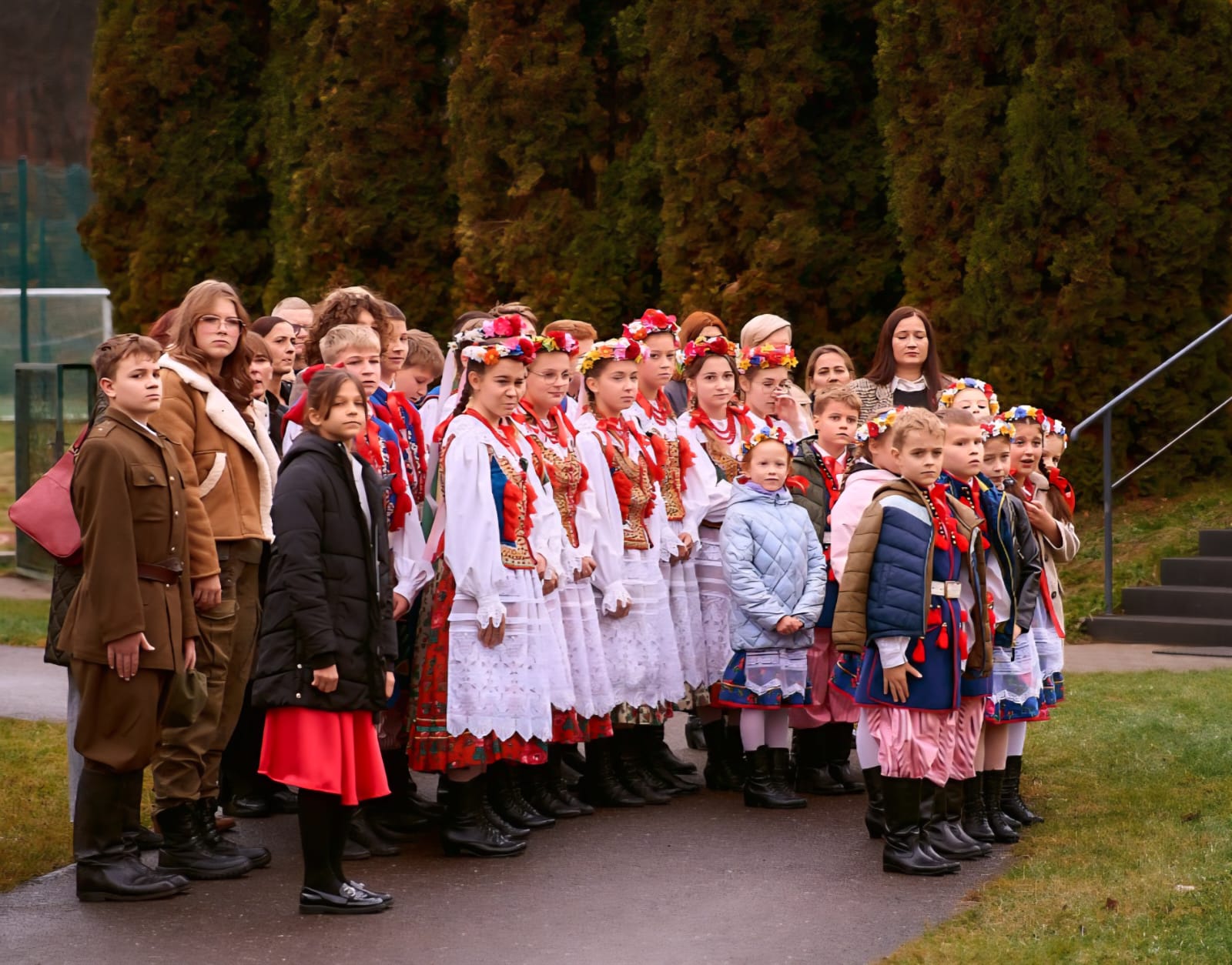 11 listopada 2025 r. celebrowaliśmy w naszej szkole Gminne Obchody Święta Niepodległości. Z tej okazji gościliśmy u nas: Pułkownika Piotra Barana – przedstawiciela Dowództwa Komponentu Wojsk Specjalnych z Krakowa, Pana Jacka Magdonia – reprezentującego Marszałka Województwa podkarpackiego oraz Oddział Instytutu Pamięci Narodowej w Rzeszowie, Panią Karolinę Duży – reprezentującą Podkarpackiego Kuratora Oświaty w Rzeszowie, Pana Andrzeja Ślipskiego Wójta Gminy Czudec oraz pana Piotra Piękosia – wicewójta Gminy, Księdza proboszcza Józefa Pańczuka – wicedziekana Dekanatu Czudeckiego, Pana Stanisława Gierlaka – Członka Zarządu Powiatu Strzyżowskiego, Pana Piotra Szopę i Pana Mariana Złotka – Radnych Powiatu Strzyżowskiego, Starszego kapitana Pana Bogdana Piaseckiego – zastępcę komendanta Powiatowego Państwowej Straży Pożarnej w Strzyżowie, Panią Celinę Bałchan – Przewodniczącą Rady Gminy Czudec wraz ze wszystkimi radnymi i sołtysami z naszej gminy, Panią Annę Borowiec – Skarbnika Gminy Czudec, Panią Annę Oliwińską – Wacko – redaktora naczelnego Kwartalnika Czudeckiego, dyrektorów i kierowników jednostek z terenu Gminy Czudec, Jednostkę Strzelecką 2020 im. kapitana Zygmunta Patryna ps. „Słowik” ze Strzyżowa, pod dowództwem młodszego inspektora Mateusza Gałuszki, poczty sztandarowe z jednostki strzeleckiej oaz straży pożarnych z terenu gminy, Panią Agnieszkę Jawor wraz z członkiniami KGW w Pstrągowej, Panią Magdalenę Wiater – Przewodniczą Rady Rodziców wraz z członkami rady, a także Rodziców, chór CANTAMUS, przyjaciół szkoły, sympatyków, sponsorów, mieszkańców Pstrągowej i innych miejscowości z Gminy Czudec.