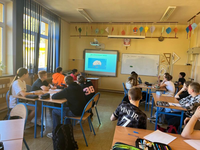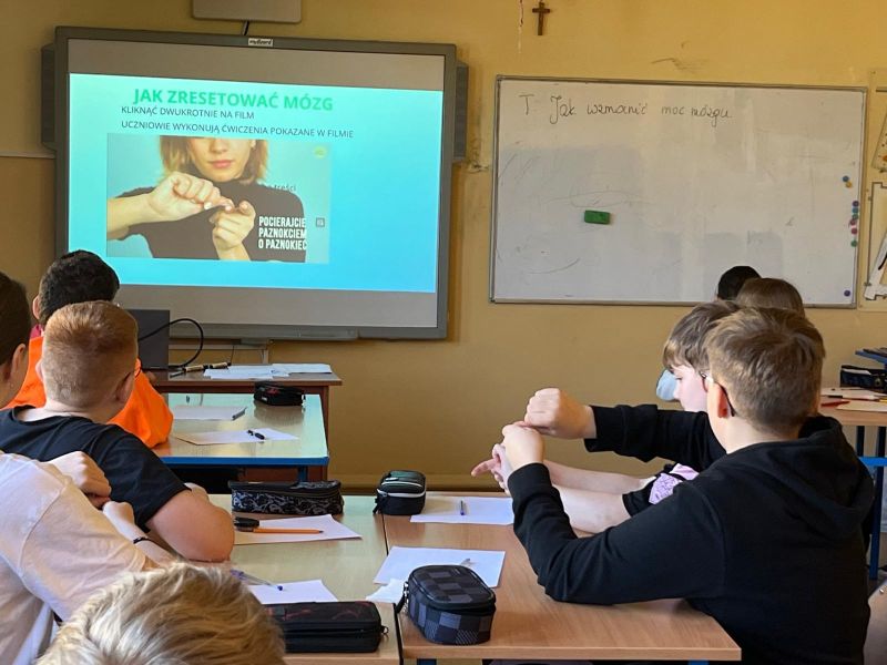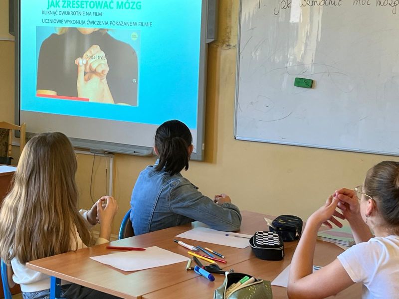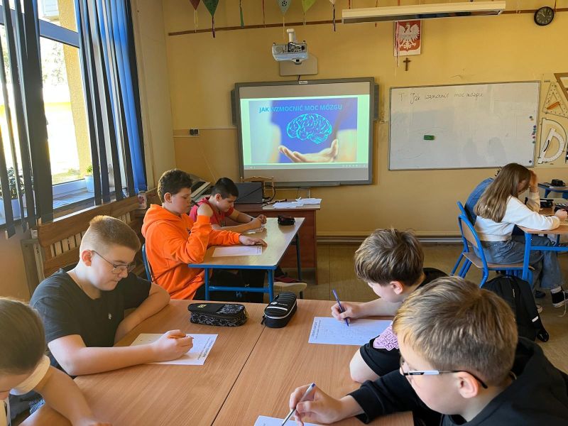 – „ Jak zwiększyć moc mózgu” – prezentacja na zajęciach dydaktycznych, pokazanie metod i ćwiczeń wpływających pozytywnie na działanie mózgu (p. J. Ożóg);