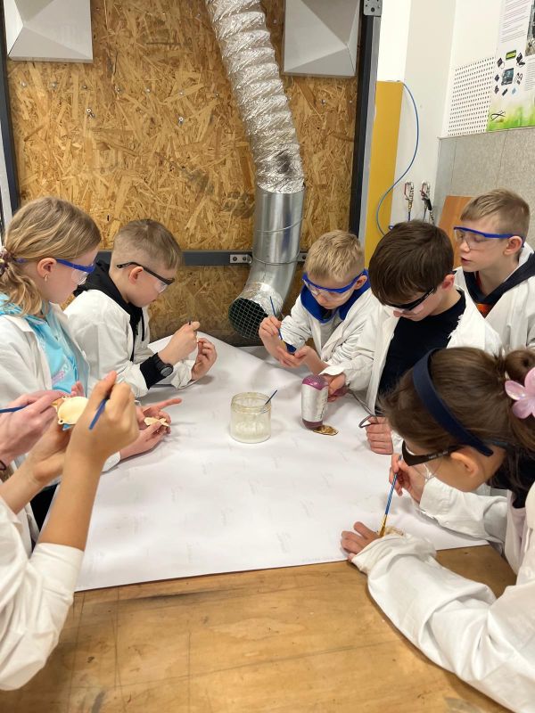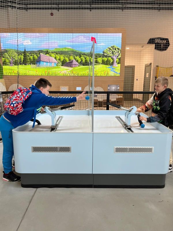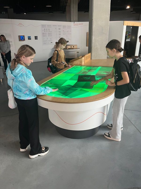 Centrum oferuje szereg eksponatów i stanowisk, które umożliwiają odkrywanie zjawisk fizycznych, chemicznych i technologicznych. Dzieci z entuzjazmem testowały różne eksperymenty, poznając zasady działania maszyn i urządzeń. Mieli możliwość również uczestniczyć w warsztatach Fablat, na których wykonywali breloczki według swojego pomysłu oraz w warsztatach z Robotyki.